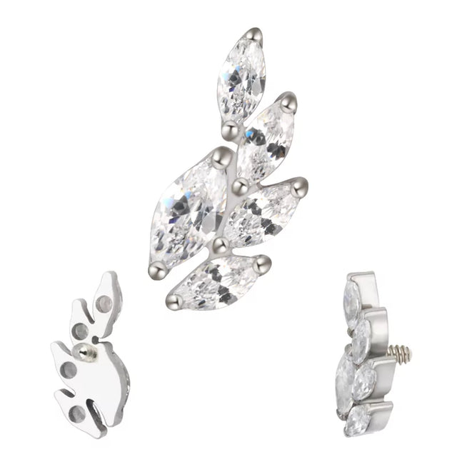 إكسسوار ثقب من التيتانيوم بدرجة زراعة مع تصميم أنيق من الكريستال الماركيز المستوحى من شكل طائر القمح، مصمم للدقة والراحة والثقب الاحترافي للجسم.