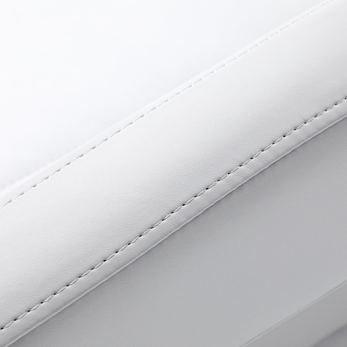الهيكل الصلب للكرسي يضمن الثبات والمتانة أثناء الاستخدام اليومي. المقعد، المحشو برغوة ذات صلابة مختارة بعناية، يضمن الراحة حتى خلال الإجراءات الطويلة. التنجيد المصنوع من جلد صناعي عالي الجودة وناعم الملمس بدرجات الأبيض يمنح الكرسي مظهراً احترافياً، مع كونه مقاوم للرطوبة وسهل التنظيف. القاعدة المتينة تضمن الثبات، والتشطيبات الدقيقة تؤكد الطابع العصري للكرسي وتعزز من راحة الجلوس.