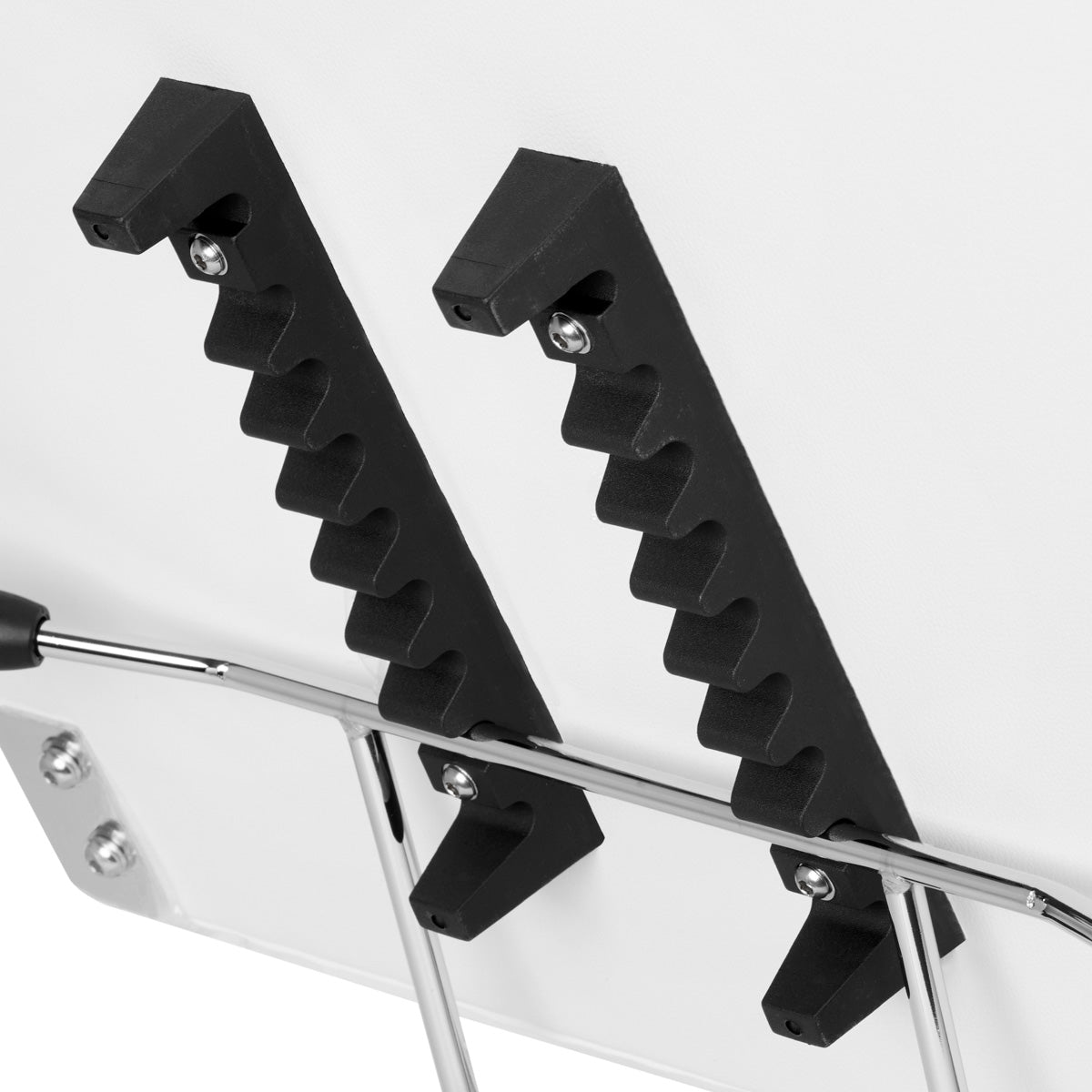 تعديل تدريجي للزوايا التي يقع عندها مسند القدم ومسند الظهر يتم بواسطة آلية خاصة. باستخدام رافعة يدوية، يمكنك ضبط وضعية الكرسي بسلاسة. هذا يسمح بـ تعديل مثالي حسب الاحتياجات الفردية، لأداء العلاجات بشكل صحيح ومريح وراحة عالية في الاستخدام. يمكن طي الكرسي حتى الوضعية المائلة، مما يزيد بشكل كبير من وظيفته. هذا يسمح لك بالقيام بحرية بأنواع مختلفة من العلاجات في مجالات من بينها التجميل، العلاج الطبيعي أو الوشم.