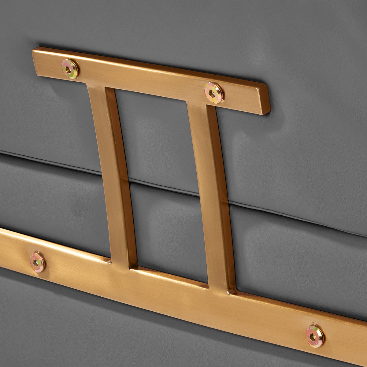 الحشو بالرغوة المتينة المقاومة للتشوه والتنجيد المصنوع من الجلد الصناعي المريح للمس يضمن متانة الأثاث وراحته في الاستخدام لفترة طويلة. كما يجعل المعدات مقاومة للرطوبة، متينة وسهلة التنظيف. التغطية الرمادية تعطيها طابعًا فريدًا. تتميز المعدات بتصميم حديث، مما يجعل الكرسي يبدو رائعًا في العديد من الصالونات المهنية.
