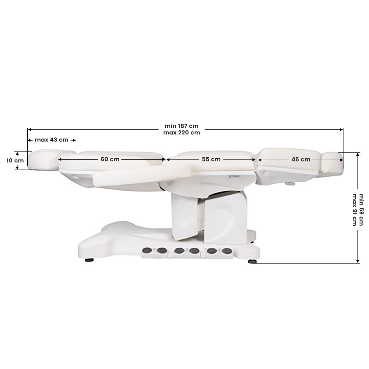 كرسي تجميل كهربائي فريد من نوعه، مناسب بشكل مثالي لصالونات التجميل وسبا. بفضل المحركات المستقلة، يسمح لك بتعديل الكرسي في 4 محاور عن طريق جهاز تحكم عن بعد ومفاتيح قدم، مما يتيح إمكانية إجراء علاجات مريحة للوجه والجسم. باستخدام جهاز التحكم عن بعد، يمكننا استخدام الإعدادات المبرمجة وتشغيل وظيفة التسخين HOT. يستخدم الكرسي تنجيدًا مثقوبًا، وهو أمر غير مسبوق في الكراسي الأخرى، وإضاءة LED ملونة في القاعدة.