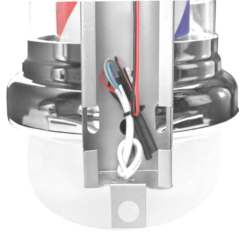 سقف مضاء ملفت للنظر، مزود بأسطوانة دوارة، هو إعلان ممتاز لصالون الحلاقة. التصميم المميز، مع عناصر دوارة باللون الأحمر والأبيض والأزرق، يخلق بطاقة عمل فريدة مفهومة دولياً لصالون الحلاقة. باستخدام جهاز التحكم عن بعد السلكي، يمكنك تشغيل كل من الإضاءة ودوران السقف.