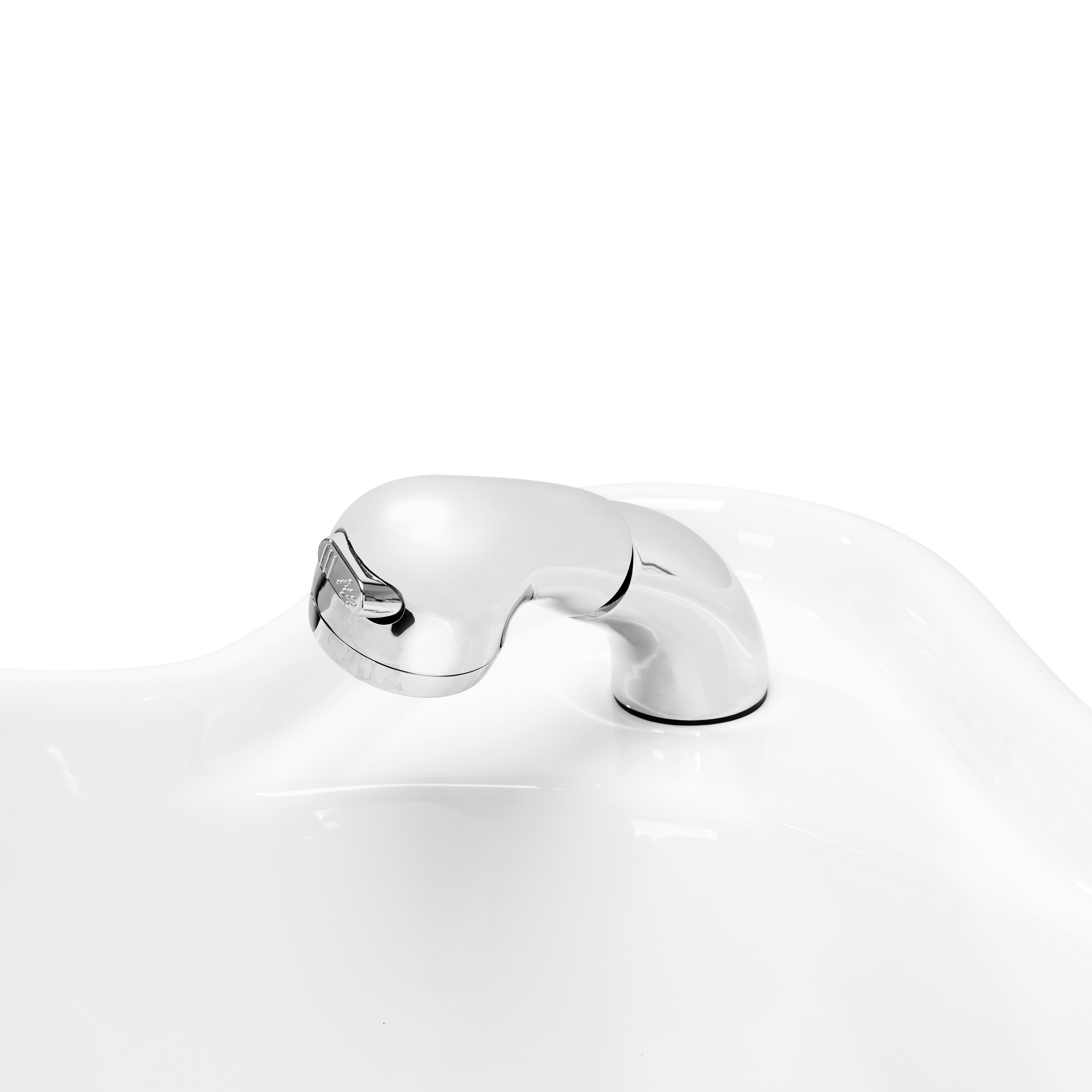 عمق حوض الغسيل الخزفي بدرجات اللون الأبيض يسمح بأداء مريح وفعال لمجموعة واسعة من خدمات تصفيف الشعر، مما يمنع رذاذ الماء والمنتجات المستخدمة أثناء العلاج بشكل مفرط. المادة المستخدمة تجعل الحوض متينًا، مقاومًا لتغير اللون والخدوش، وسهل التنظيف جدًا. طوق مصمم بشكل صحيح يوفر الراحة أثناء غسل الشعر. استخدام دعم خاص في الحوض يضمن دعمًا مناسبًا للرأس، بحيث لا يستند وزنه على الرقبة. الحل المبتكر يمنع التوتر والانزعاج في منطقة الرقبة ويضمن راحة عالية، حتى أثناء العلاجات الطويلة. بالإضافة إلى ذلك، بفضل الغطاء البلاستيكي الأسود المريح، لن يشعر العميل بعدم راحة سطح السيراميك البارد.
