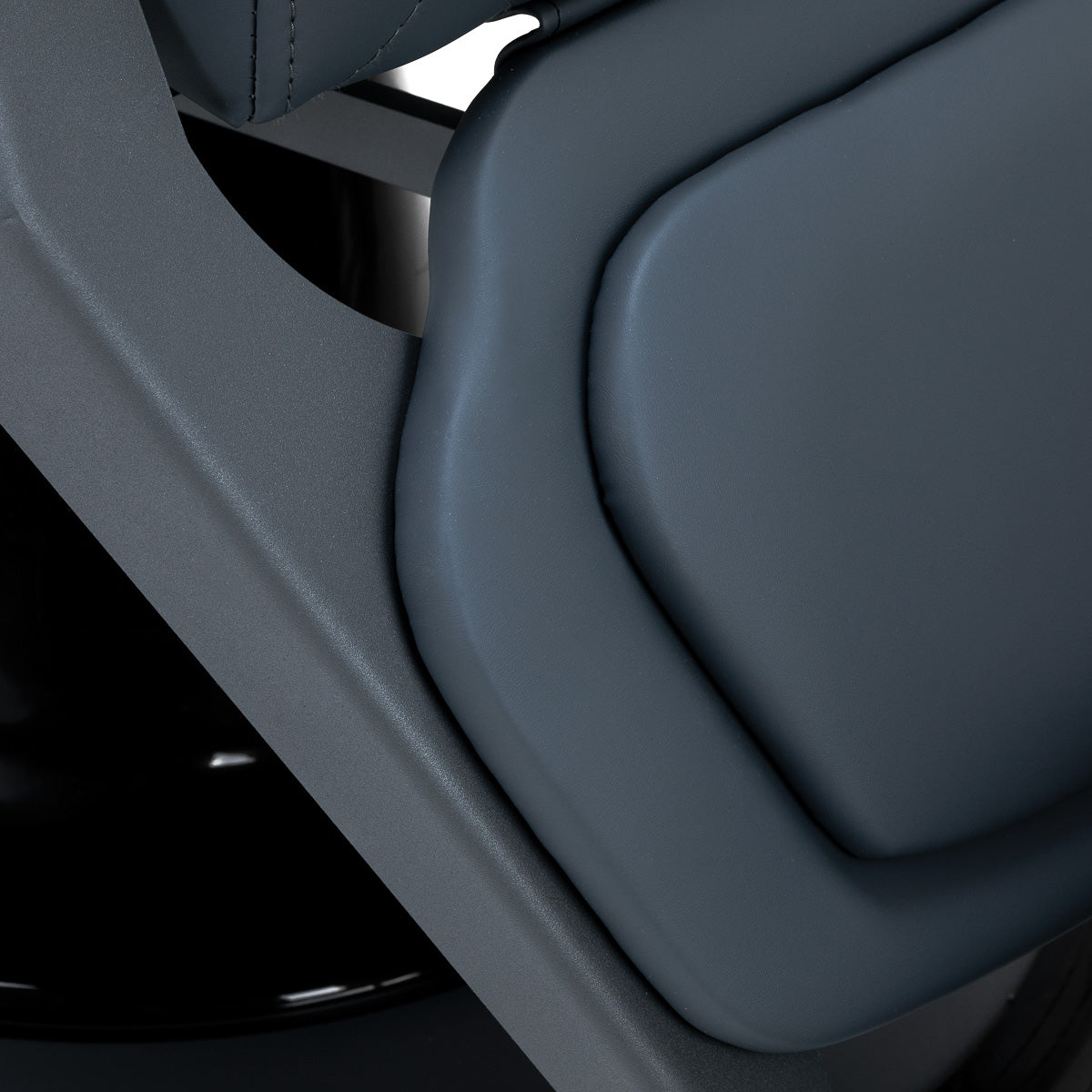 تصميم المقعد المريح ومسند الظهر المصمم بعناية يضمنان راحة العميل حتى أثناء العلاجات الطويلة. مساند الذراعين المبطنّة والمثبتة على الارتفاع الأمثل تسمح بـوضع ذراع العميل بشكل صحيح، مما يمنع التوتر في منطقة الرقبة والكتف. آلية الدوران الكاملة تزيد من مرونة العمل وتسمح بضبط الكرسي بسهولة لأي وضعية.