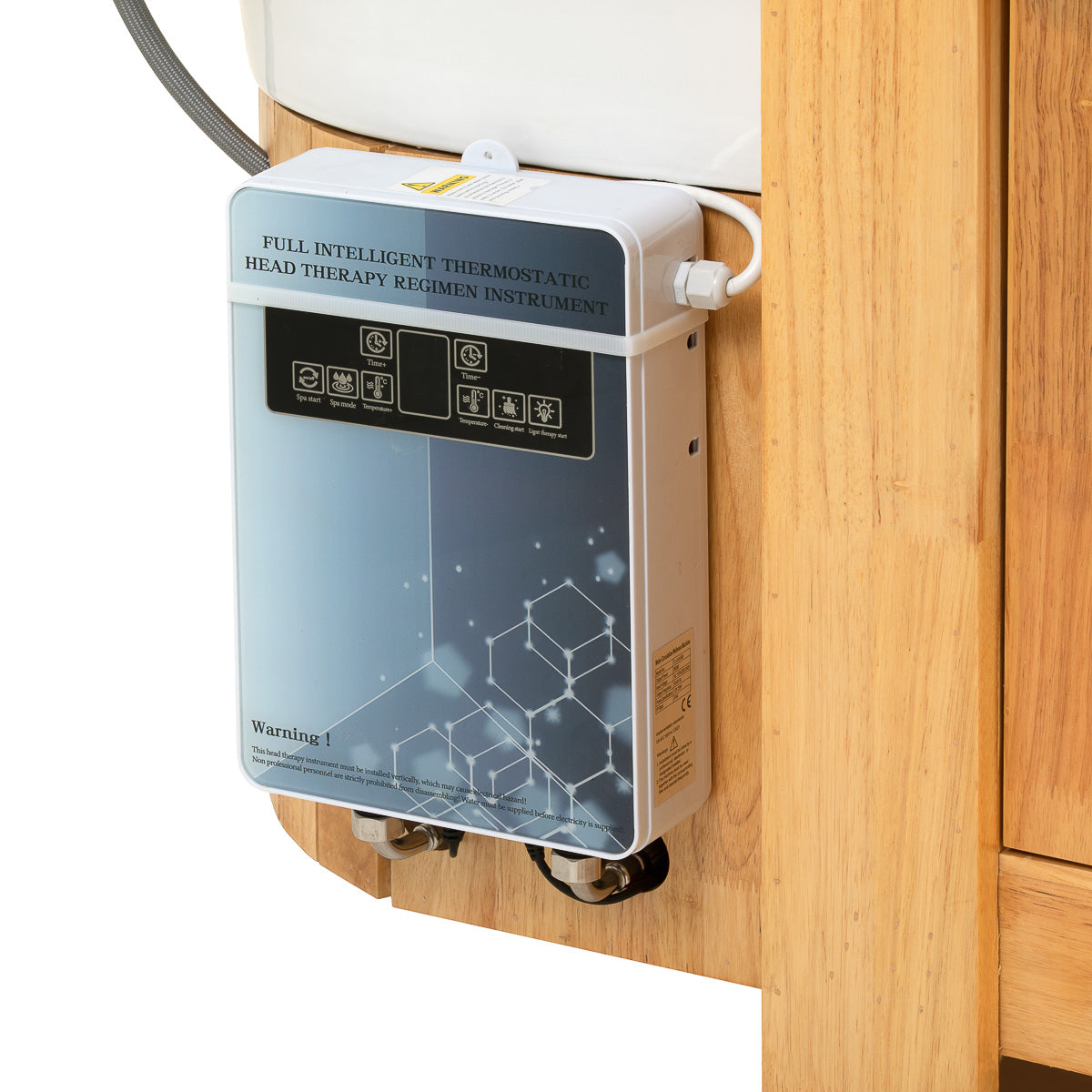 تسمح لوحة اللمس البديهية بالتحكم الكامل في معلمات العلاج، مما يضمن سهولة الاستخدام. تسمح بضبط وقت التشغيل ودرجة حرارة الماء، بالإضافة إلى مراقبة الإعدادات في الوقت الحقيقي. تتيح اللوحة أيضًا تفعيل العلاج الضوئي – حيث يخلق الضوء في الحوض جوًا مريحًا ويعزز الشعور بالفخامة أثناء العلاج. بالإضافة إلى ذلك، تم تجهيز جهاز العلاج بالبخار بجهاز تحكم عن بعد لسهولة التشغيل.