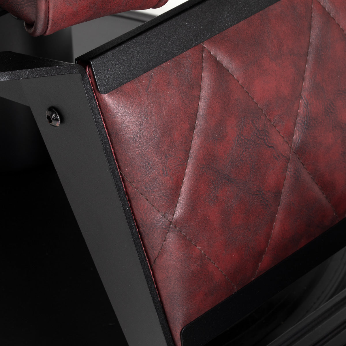 تضمن بنية القاعدة الدائرية الصلبة للكرسي الثبات وراحة المستخدم الممتازة. يضمن حشو المقعد المصنوع من رغوة مقاومة للتشوه، والتنجيد المصنوع من الجلد الصناعي الناعم الملمس ذو التشطيب غير اللامع متانة طويلة الأمد وراحة أثناء الاستخدام المطول. تضيف الغرز الأنيقة على التنجيد طابعًا، مستوحاة من تصميم السيارات التي تعزز مظهره الأنيق. تجعل هذه الميزة الكرسي أيضًا مقاومًا للرطوبة، متينًا، وسهل التنظيف. يمنح التنجيد بألوان البورجوندي الكرسي طابعًا فريدًا، ويسمح الأسلوب البسيط له بالاندماج بسلاسة مع ديكور أي محل حلاقة.