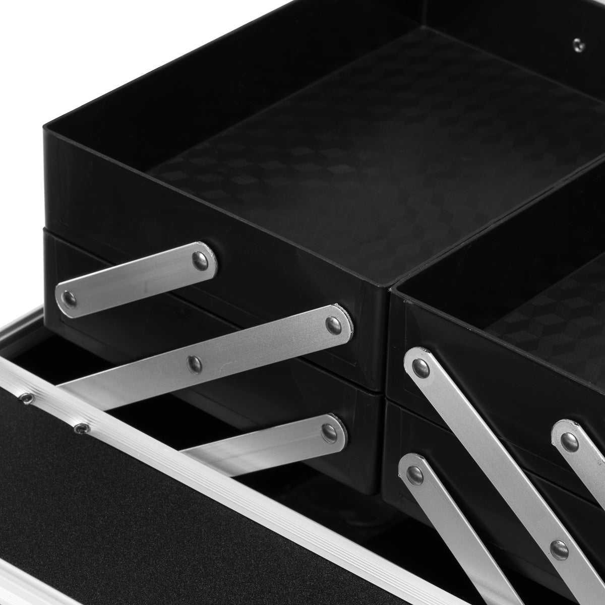 حقيبة التجميل الأنيقة 44 هي مزيج من الوظائف والأناقة، تضمن التنظيم المريح، التخزين الآمن والوصول السريع إلى الأدوات الأساسية. إنها مثالية للاستخدام اليومي، خاصة للمصففين المتنقلين. يتيح الداخل الفسيح مع الأرفف القابلة للسحب تنظيم الإكسسوارات، وستحتوي الحجرة الواسعة على مثقاب أظافر، مستحضرات أو أدوات ضرورية أخرى.