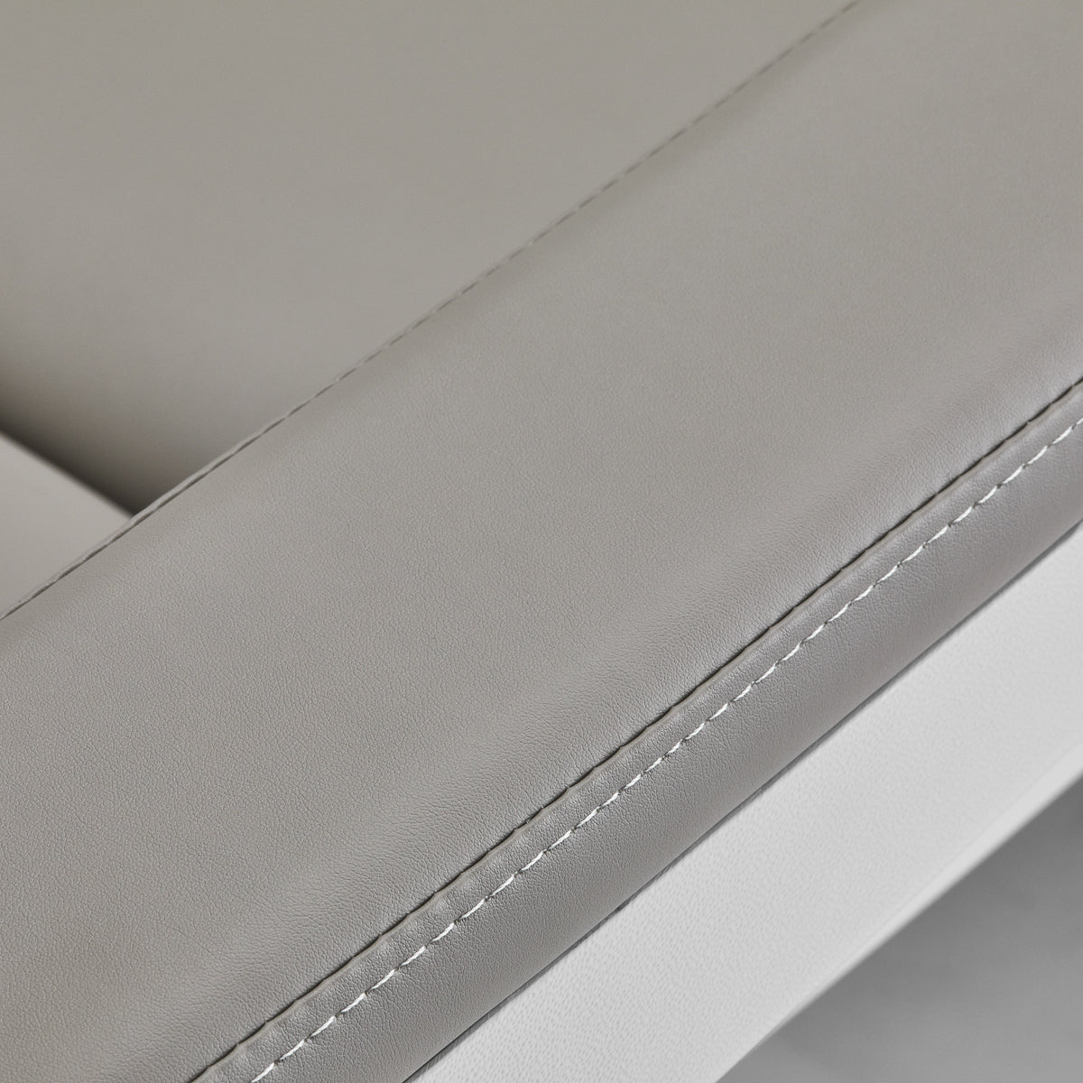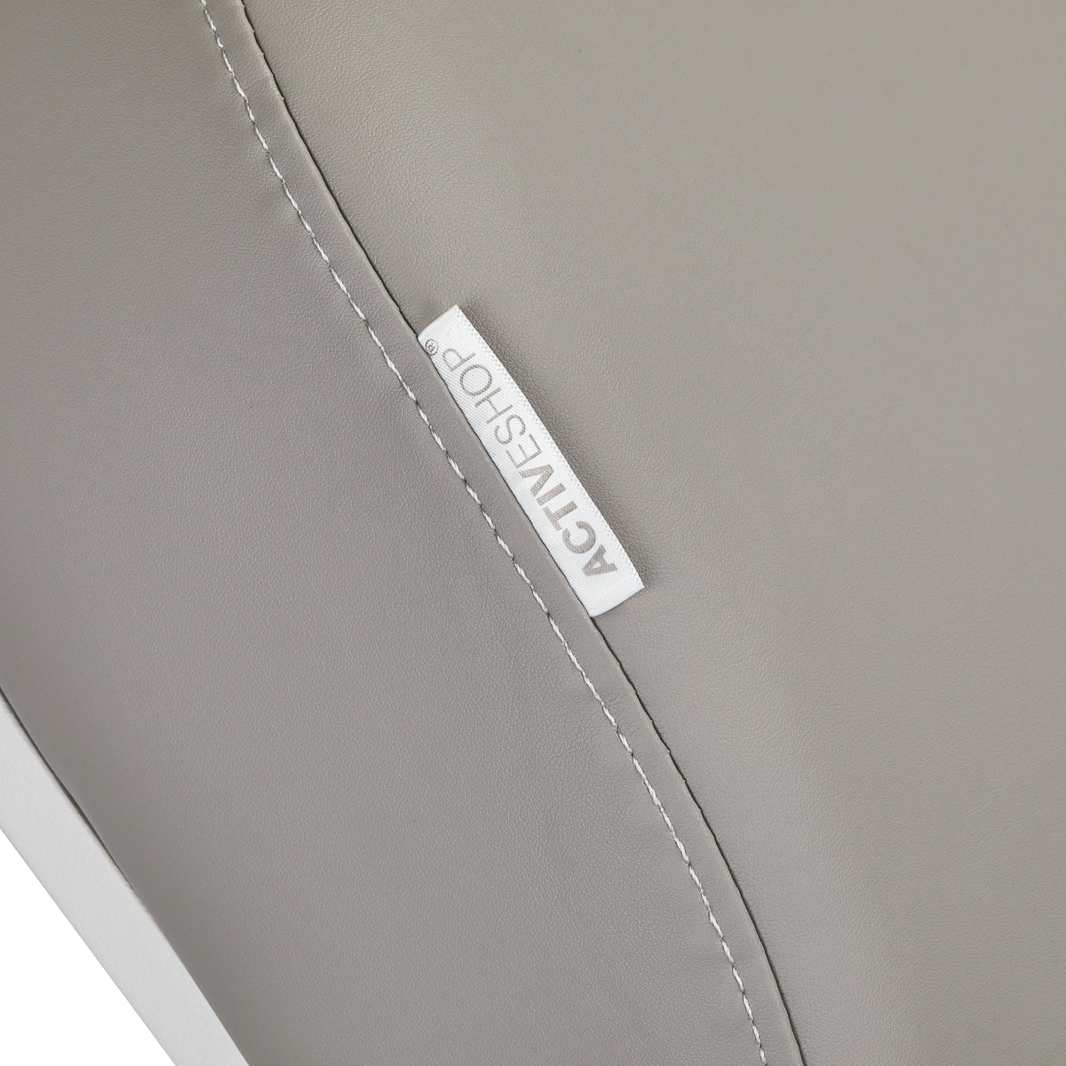 الكرسي مملوء برغوة ذات صلابة مناسبة ومغطى بجلد صناعي لطيف الملمس بدرجات اللون الرمادي. بفضل استخدام مادة سهلة التنظيف ومقاومة لمطهرات مختارة، فإن المعدات مريحة للاستخدام، مقاومة للرطوبة وسهلة التنظيف. قاعدة صلبة مصنوعة من مادة بيضاء متينة تضمن الثبات أثناء العلاجات. الحواف المصممة بشكل مناسب تعطي الكرسي مظهراً أنيقاً وتجعل المقعد مريحاً من الناحية الهندسية.