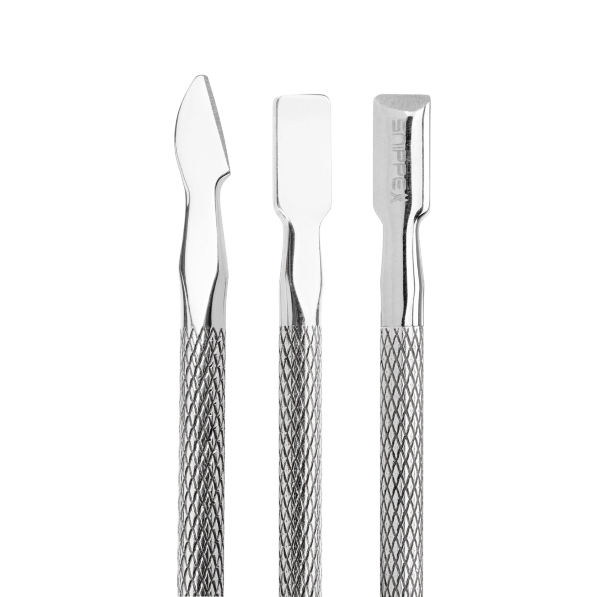 حافر SNIPPEX متعدد الوظائف ذو الوجهين مع تشطيب مصقول هو أداة شاملة، يمكن استخدامها لعلاجات المانيكير والباديكير في صالونات التجميل المهنية وفي المنزل، مع الحذر الشديد بسبب إمكانية الإصابة. باستخدام هذه الأداة يمكنك بسهولة دفع الجلد الزائد للخلف، وكذلك إزالة طلاء الأظافر الهجين.
