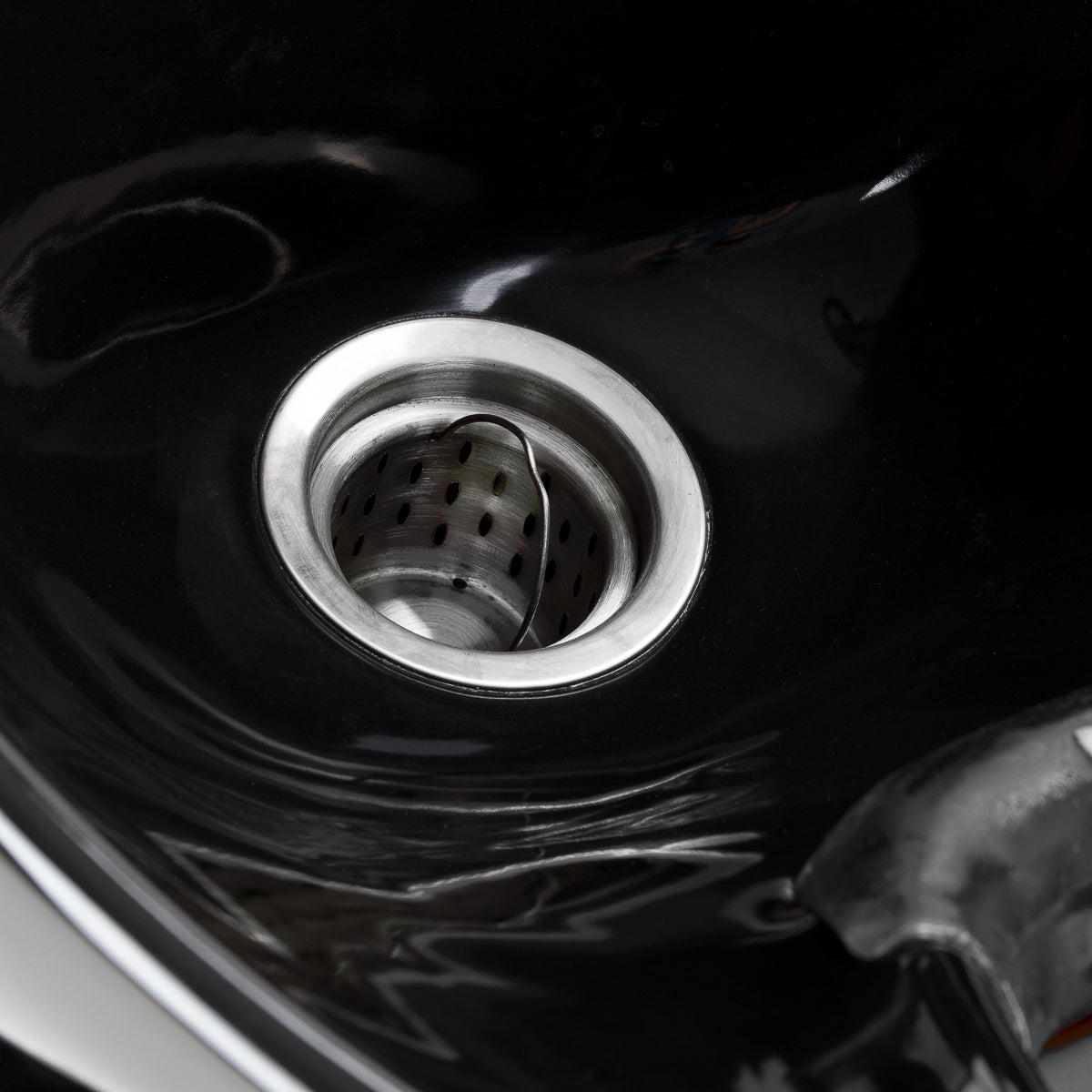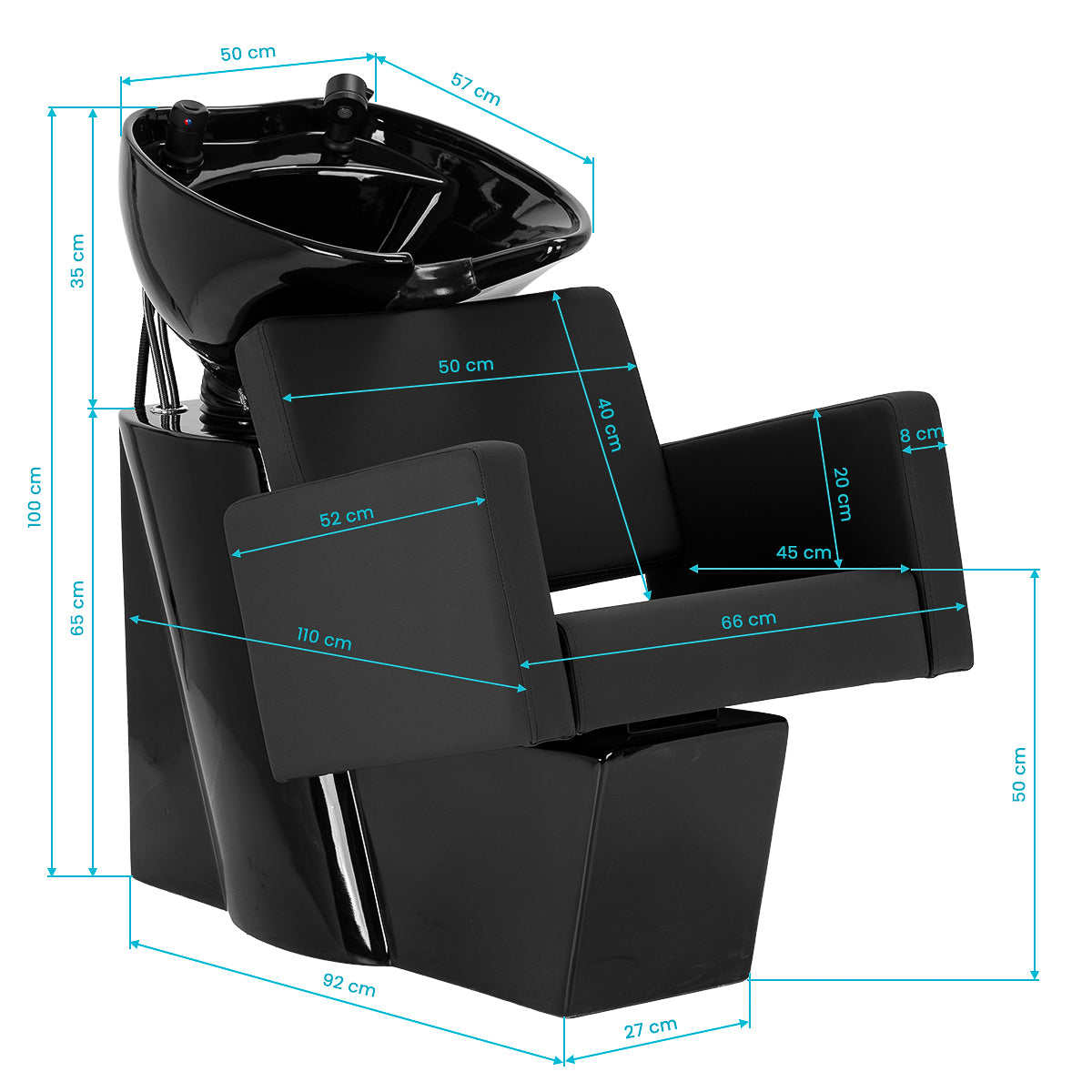 الحوض الخزفي العميق بدرجات اللون الأسود يقلل من تناثر الماء ومستحضرات التجميل أثناء العلاجات. زاوية الحوض القابلة للتعديل تسمح بضبط دقيق حسب احتياجات الزبون. مصنوع من مادة متينة، مقاوم لتغير اللون والخدوش والمواد الكيميائية، وسطحه الأملس يسهل تنظيفه. الطوق المصمم بشكل مريح يوفر دعمًا مريحًا للرأس، والغطاء البلاستيكي الأسود يزيل شعور البرودة عند ملامسته للخزف.