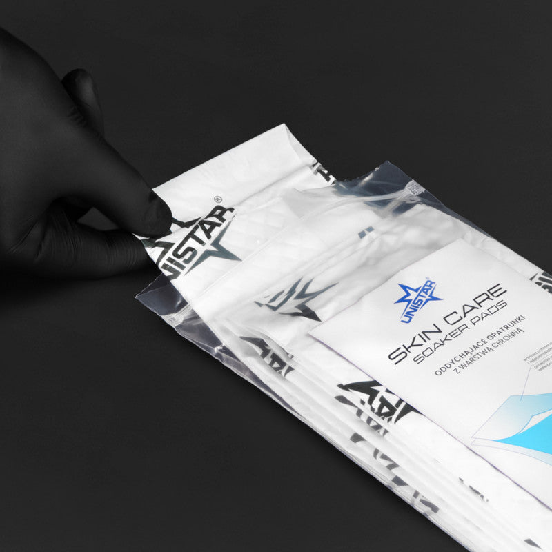 وسادات Unistar Skin Care Soaker Pads هي وسادات تنفسية احترافية مصممة لشفاء الوشوم. مع هيكل ثلاثي الطبقات، توفر أقصى امتصاص ونظافة وراحة—تحافظ على الوشوم محمية من العوامل الخارجية مع ضمان بيئة مثالية للشفاء السليم.