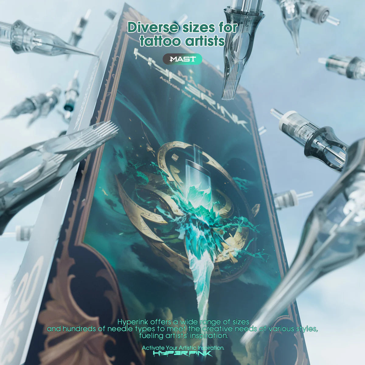 • التنوع من أجل حرية الإبداع – متوفر بأحجام وتكوينات متعددة، تدعم خراطيش هايبرلينك أنماط وشم متنوعة، مما يمكّن الفنانين من الإبداع بلا حدود.