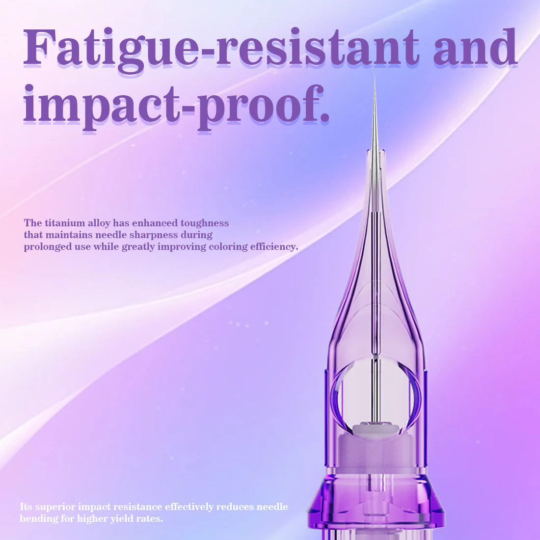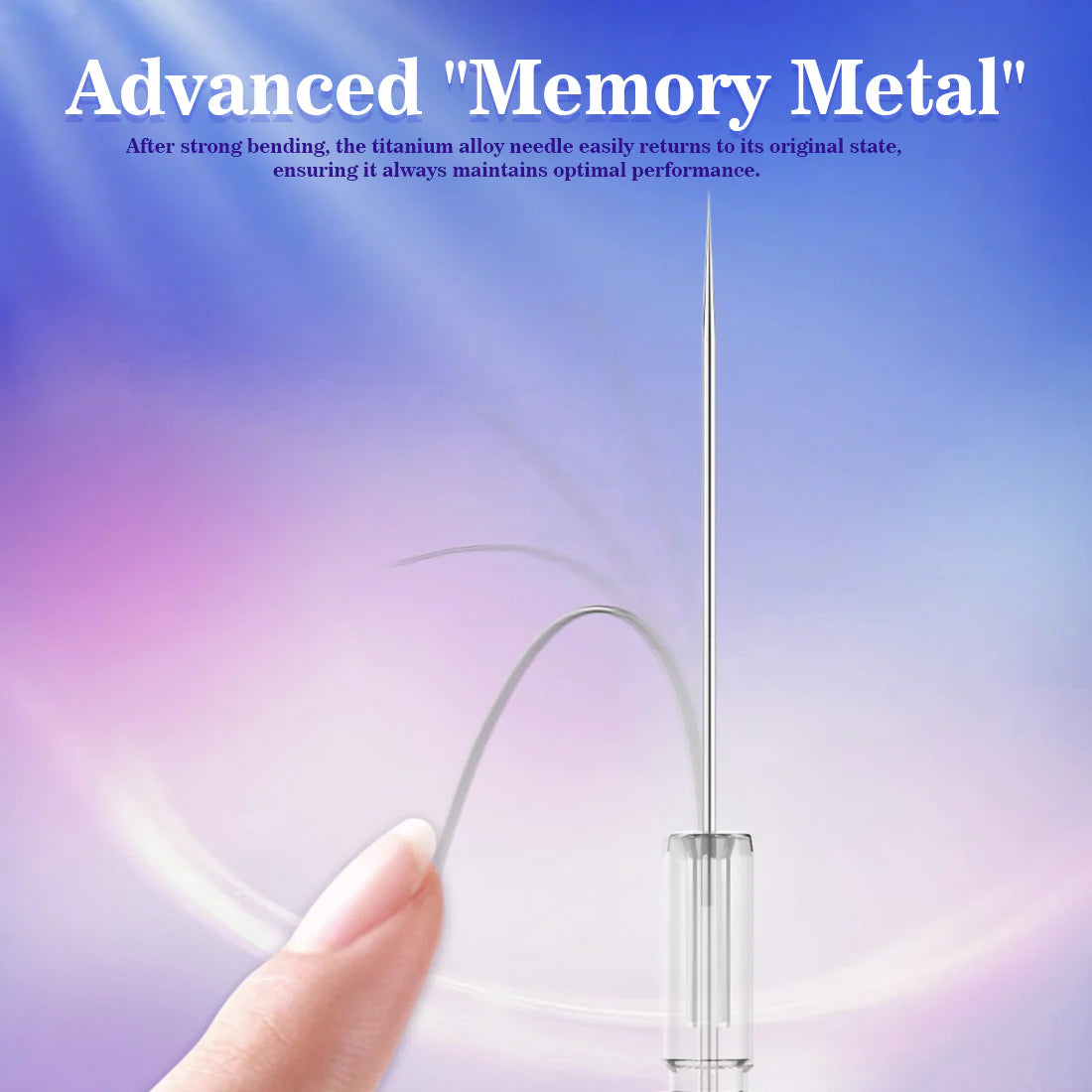 - إبرة تيتانيوم مميزة: مصنوعة من سبيكة التيتانيوم، توفر هذه الإبر متانة تفوق 3 أضعاف الفولاذ المقاوم للصدأ 304 القياسي. تحافظ على أداء حاد كالشفرة خلال جلسات طويلة، مما يقلل الانقطاعات ويعزز سير العمل.