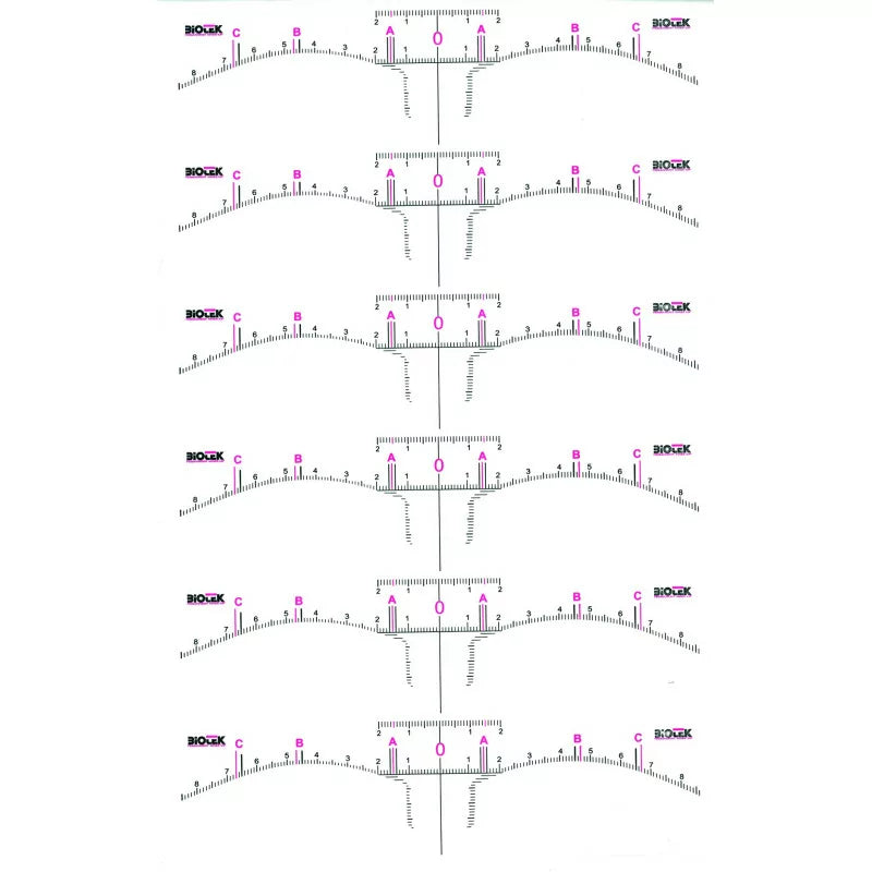 مثالية لكل من مرحلة الرسم التحضيرية وكفحص نهائي للتحقق من التناظر، تضمن مساطر الحواجب اللاصقة من Biotek أن يكون شكل كل حاجب متوازنًا ومحاذيًا بشكل مثالي. تجعل علامات القياس الواضحة وسهلة القراءة من السهل قياس، وتحديد، والتحقق المزدوج من تصميمك، مما يوفر نتائج احترافية بثقة واتساق.