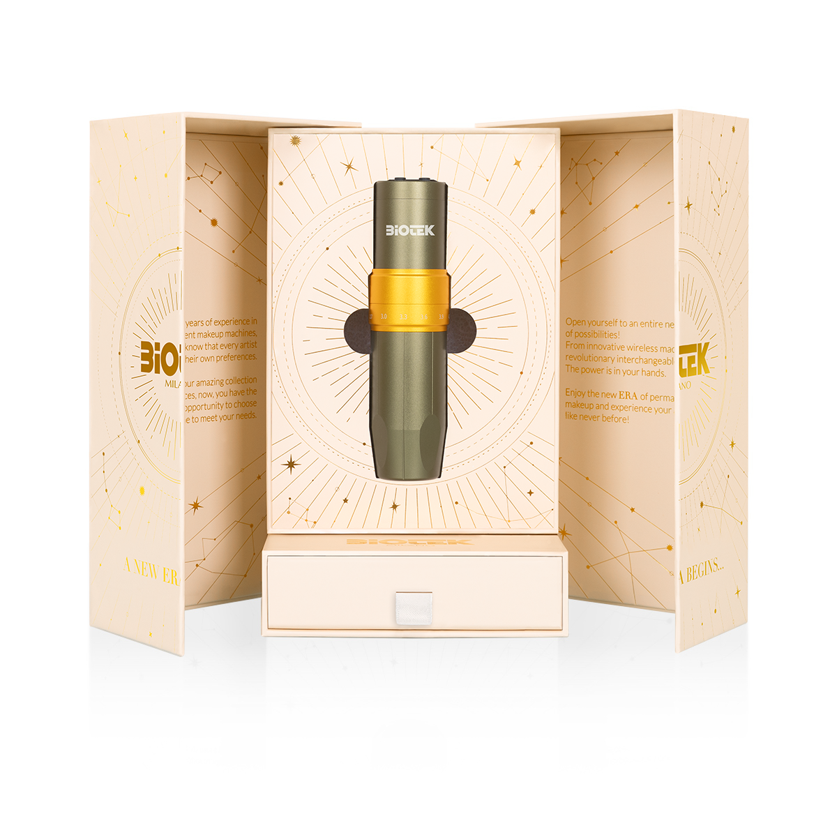 مصمم للمرونة والدقة، يتكيف ERA Astra مع تقنيات وأنماط مختلفة، مما يجعله حلاً كاملاً وقابلاً للتخصيص لفناني الوشم والمكياج الدائم المحترفين.
