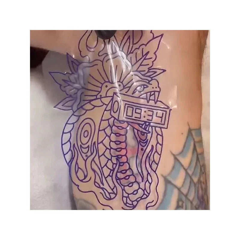 يُعد هذا الورق الشفاف المبتكر للقوالب ذا قيمة خاصة للتغطيات، ودمج التصاميم الجديدة مع الوشوم الموجودة، والعمل في المناطق الضيقة أو المعقدة. تتيح الرقاقة الشفافة لك وضع القالب بثقة، مما يضمن أن يتناسب عملك الفني الجديد بسلاسة مع العمل السابق من المحاولة الأولى.