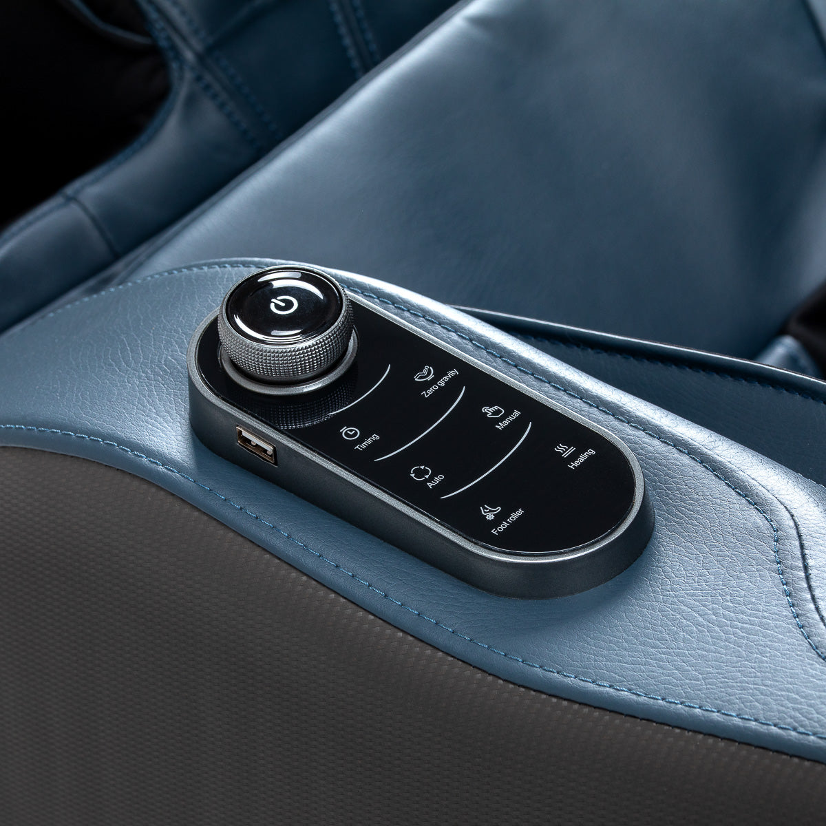 لزيادة الراحة، تم تجهيز الكرسي بمجموعة إضافية من أزرار التحكم الموجودة على مسند الذراع الأيسر. يوفر جهاز التحكم عن بعد المدمج وصولًا سريعًا إلى أهم الوظائف دون الحاجة للوصول إلى اللوحة الرئيسية. يتيح هذا للمستخدم تغيير نوع التدليك بسهولة، بدء تدليك القدم، تفعيل وظيفة التدفئة ووظيفة الجاذبية الصفرية، مما يسمح بالتحكم الكامل في الراحة وشدة الاسترخاء في أي وقت.