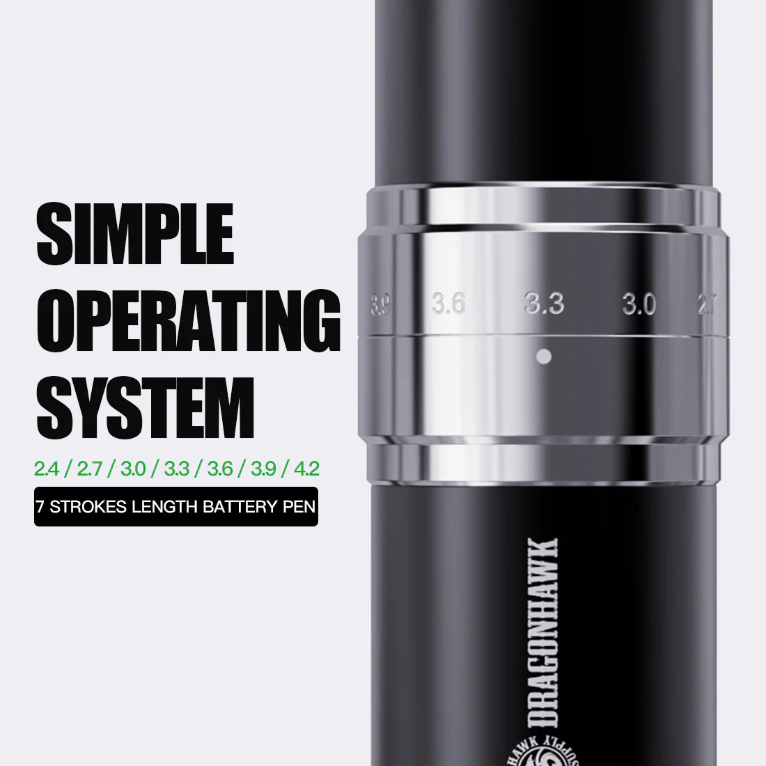 يعمل بواسطة محرك بدون فرشاة هادئ منخفض الاهتزاز، يضمن الجهاز حركة إبرة سلسة وتشغيل مستقر، مما يدعم خطوطًا نظيفة، وتظليلًا مضبوطًا، وتعبئة ألوان متينة. يسمح طول الضربة القابل للتعديل (2.4–4.2 مم) للفنانين بتكييف الجهاز بسهولة مع تقنيات مختلفة - من التفاصيل الدقيقة إلى التعبئة الجريئة والأعمال الواقعية.