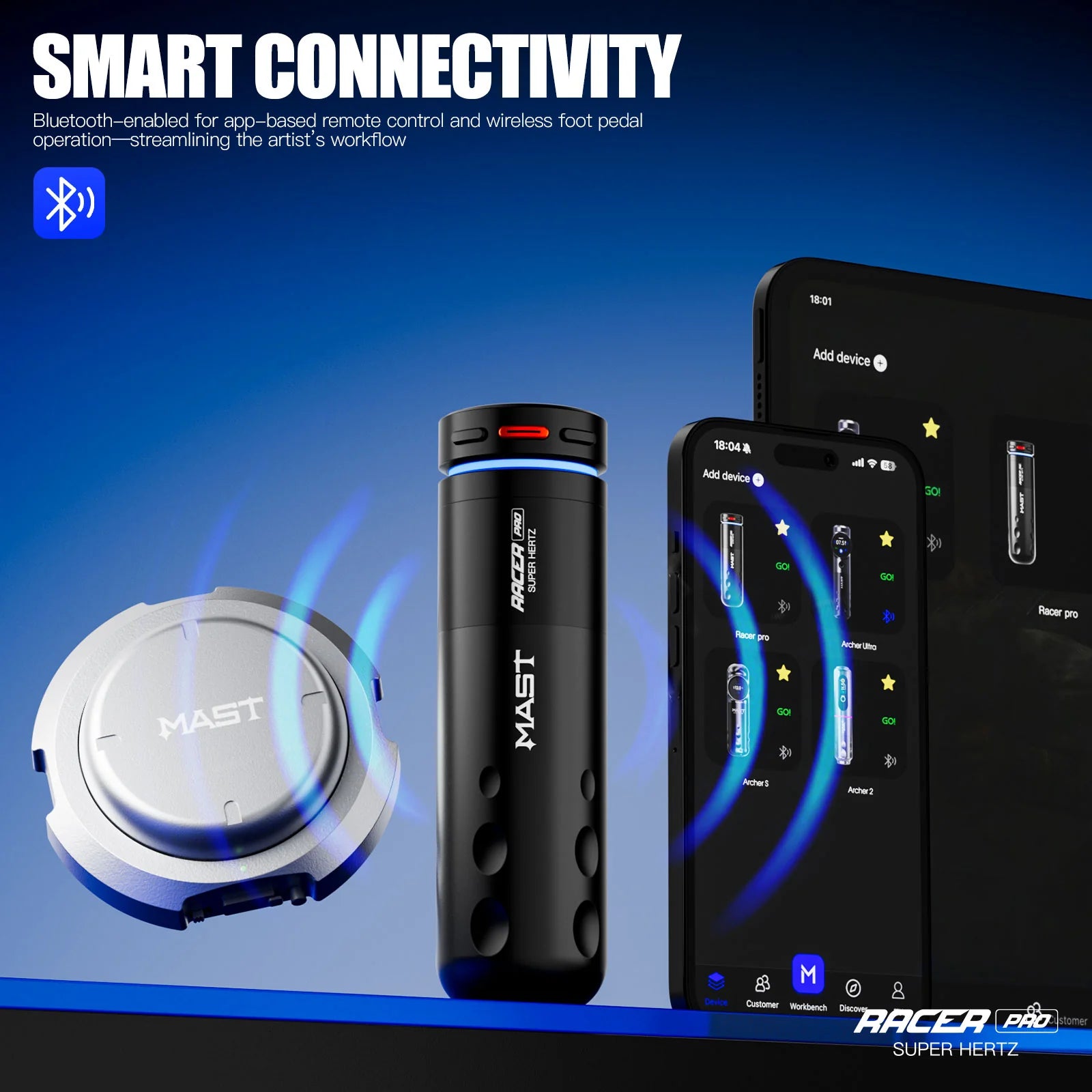 مزود باتصال بلوتوث، ودعم دواسة قدم لاسلكية، وشاشة ملونة عالية الوضوح بحجم 0.85 بوصة، يمنح ماست ريسر برو السيطرة الكاملة بين يديك - مما يسمح لك بالتركيز على الفن، وليس على الإعداد. مصمم ليدوم، خفيف الوزن، ومصمم للدقة، إنه المعيار الجديد لآلات الوشم اللاسلكية الاحترافية.