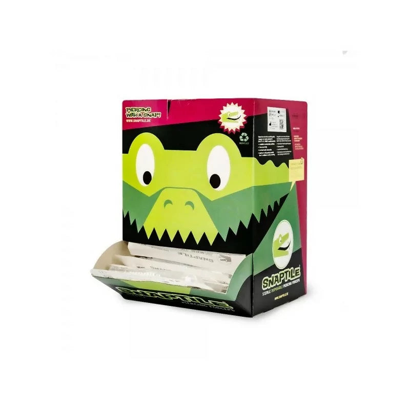 يتم توفيرها في عبوة كبيرة تحتوي على 100 ملقط معقم، تساعد SNAPTILES في الحفاظ على معايير نظافة عالية مع تقليل وقت التحضير بين العملاء. تصميمها المريح يوفر سهولة في الإمساك، بينما يضمن البناء المتين أداءً موثوقًا في كل عملية ثقب.