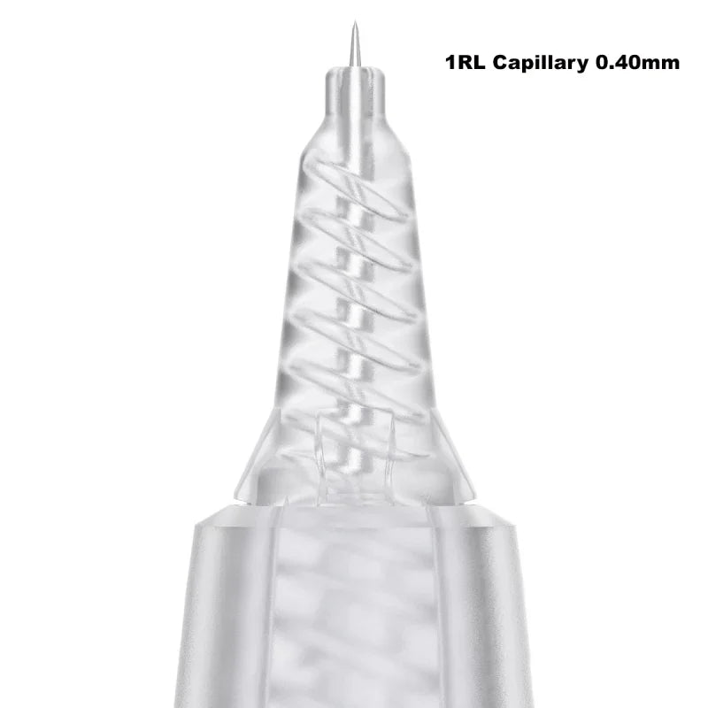 • 1RL نانو (0.20مم): الإبرة الأحادية الأرفع، مثالية لشعر الفيلجري، وتحديد الشفاه، والعمل الشعيري على الهالة.